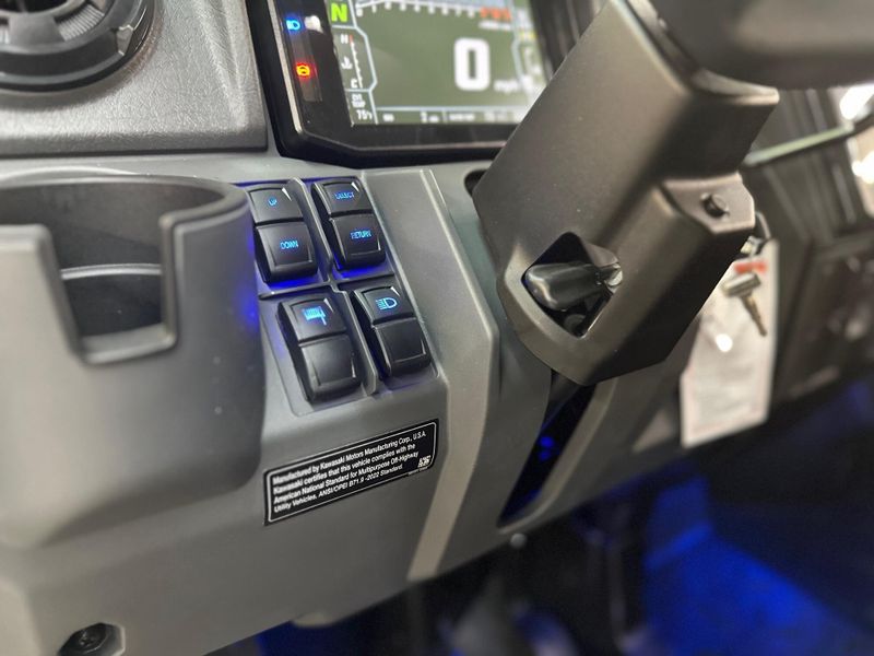 • PREMIUM AUTOMOTIVE FIT & FINISH: RIDGE® side x sides boast class-leading comfort and premium fit and finish. Every journey, short or long, benefits from a multitude of thoughtful, automotive-inspired features—starting with tasteful interior lighting. High-grade materials and spacious accommodations invite passengers and enrich every moment inside. A high-tech cabin with helpful technology, like a full-color display screen, built-in smartphone connectivity, and Kawasaki's exclusive RIDEOLOGY THE APP POWERSPORTS*, connects you to RIDGE for a more informed ride. Together, these features create a side x side with as much refinement as raw power.
